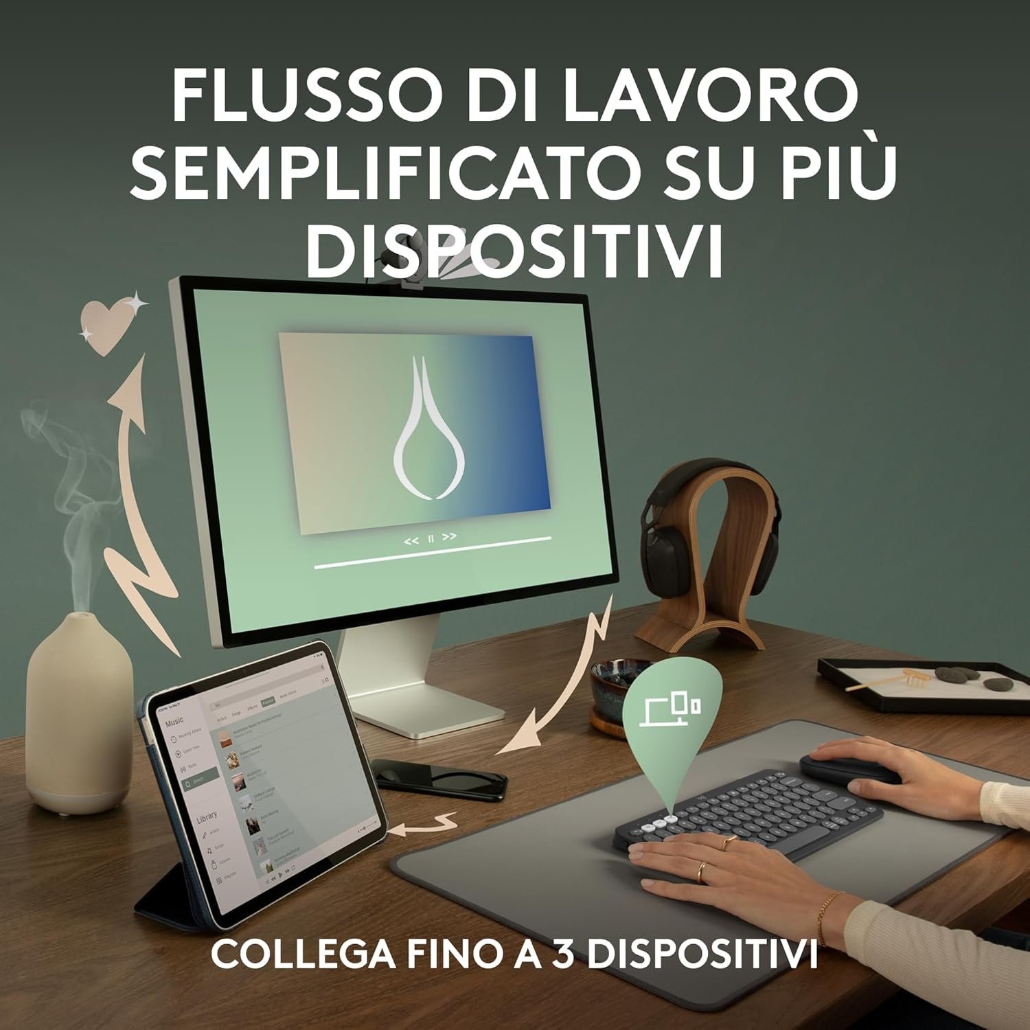 • يمكنك التنقل بسهولة عبر 3 أجهزة: استخدم البلوتوث لتوصيل ما يصل إلى 3 أجهزة لاسلكية عبر نظام التشغيل